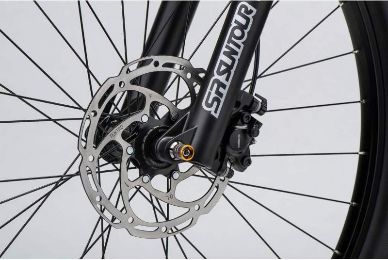 Además, las ruedas, equipadas con llantas Schurmann Yak Disc 25 y cubiertas WTB Ranger 2.3 Comp, ofrecen un equilibrio perfecto entre tracción, rodadura y resistencia a los pinchazos. Gracias a ellas podrás afrontar una amplia variedad de terrenos, desde senderos de tierra suelta hasta caminos pavimentados, sin sacrificar el rendimiento.